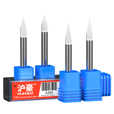 HUHAO 3.175mm Alta Precisão Plana V Shaper Gravura Bit Cnc Metal Escultura Brocas De Tungstênio Aço Router Cortador