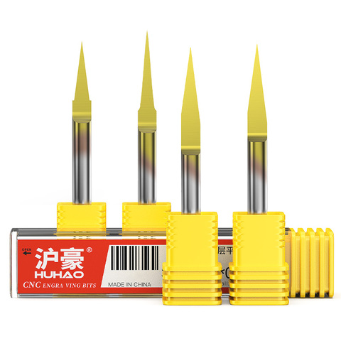 HUHAO 3.175mm Shank Revestido Gravura V Bit CNC Carbide Tungsten Aço Acrílico Gravura PVC Estanho Revestido 3562