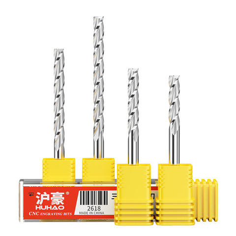 HUHAO 3.175mm 4mm 6mm Três Flautas Espiral Carbide Tungstênio Aço Fresa Cortador de Corte Broca 2618